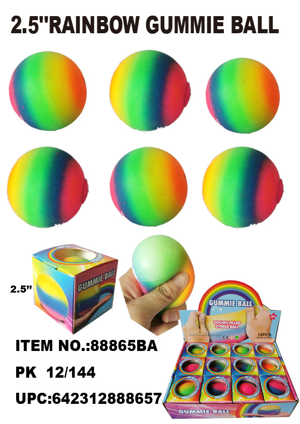 88865  2.5 SQUISH STRETCH BALL /RAINBOW COLOR  24/144PCS