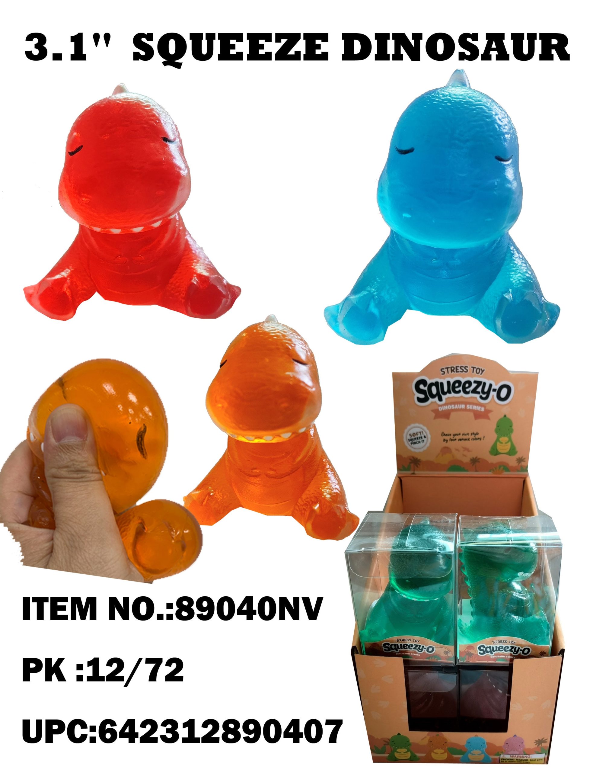 89040  3.15 STRESS TOYS SQUEEZY-O DINOSAUR 12/72PCS
