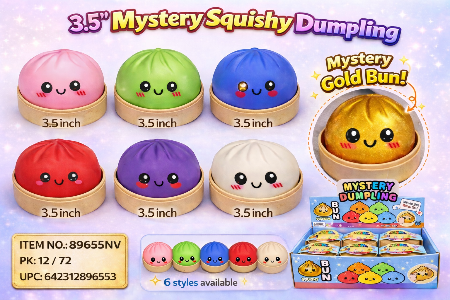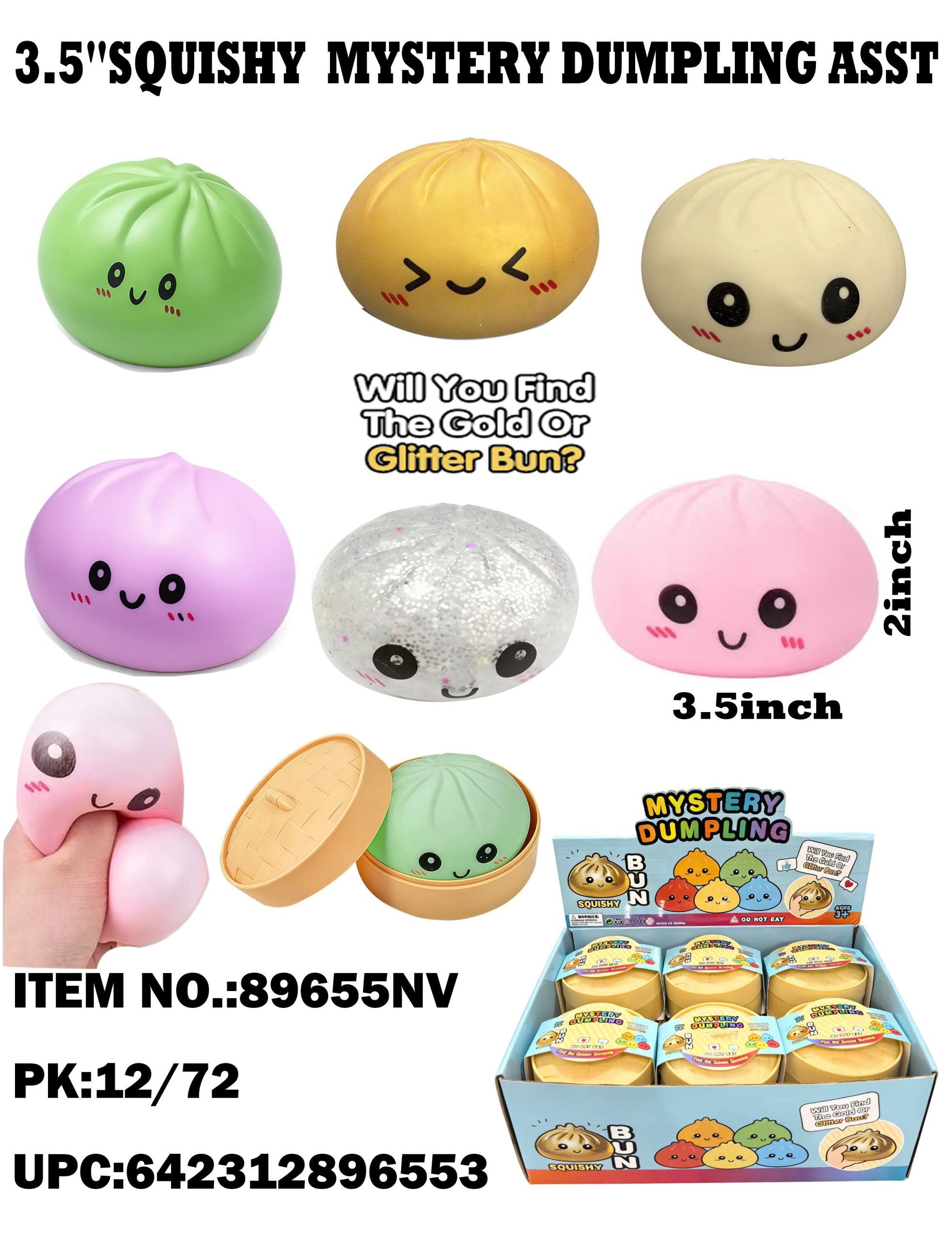 89655  3.5 Squishy Mystery Dumpling Assorted with Steamer 12/72PC
