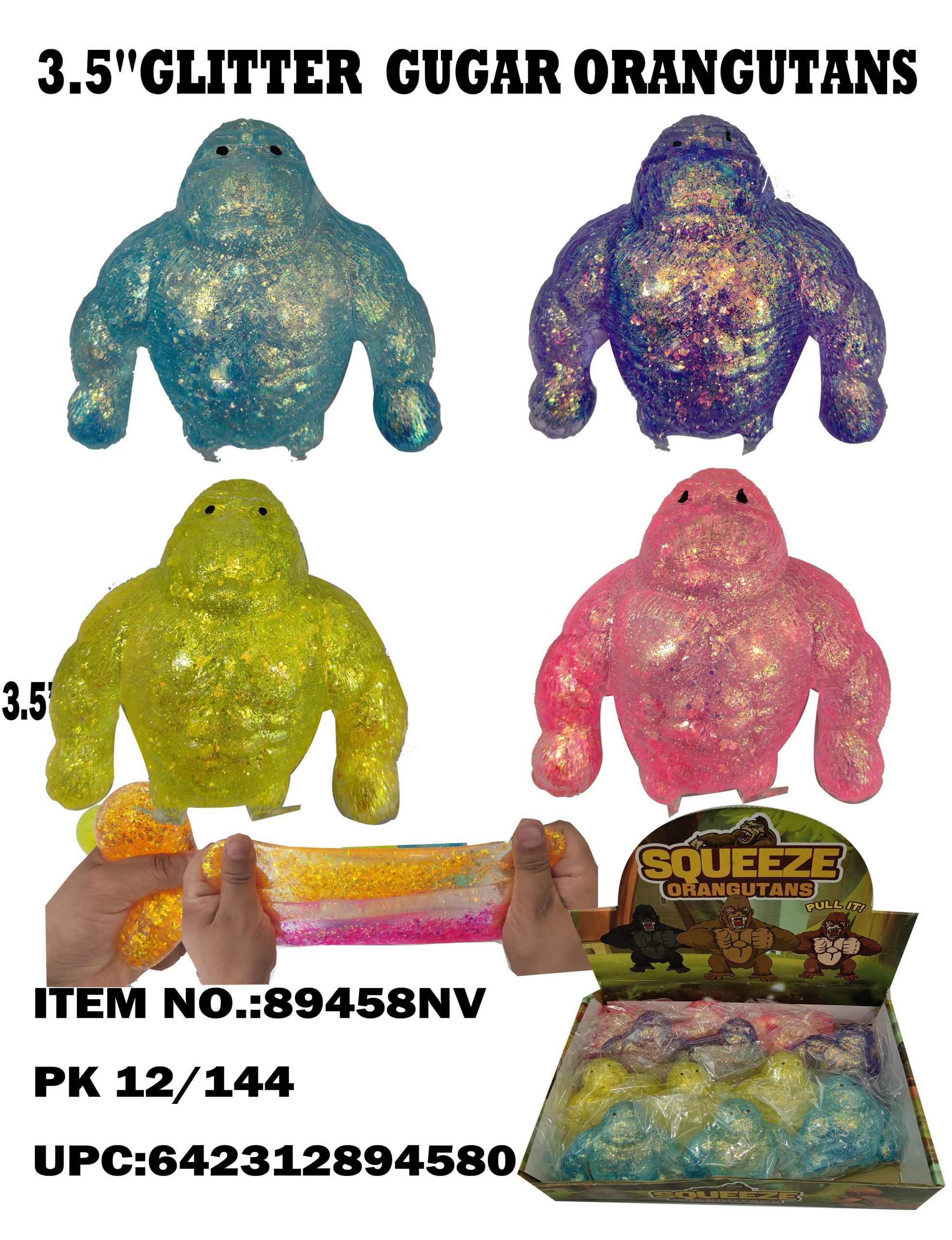 89458   3.5 Stretch Gorilla Sugar Ball 12/144PCS  4 Colors Mixed