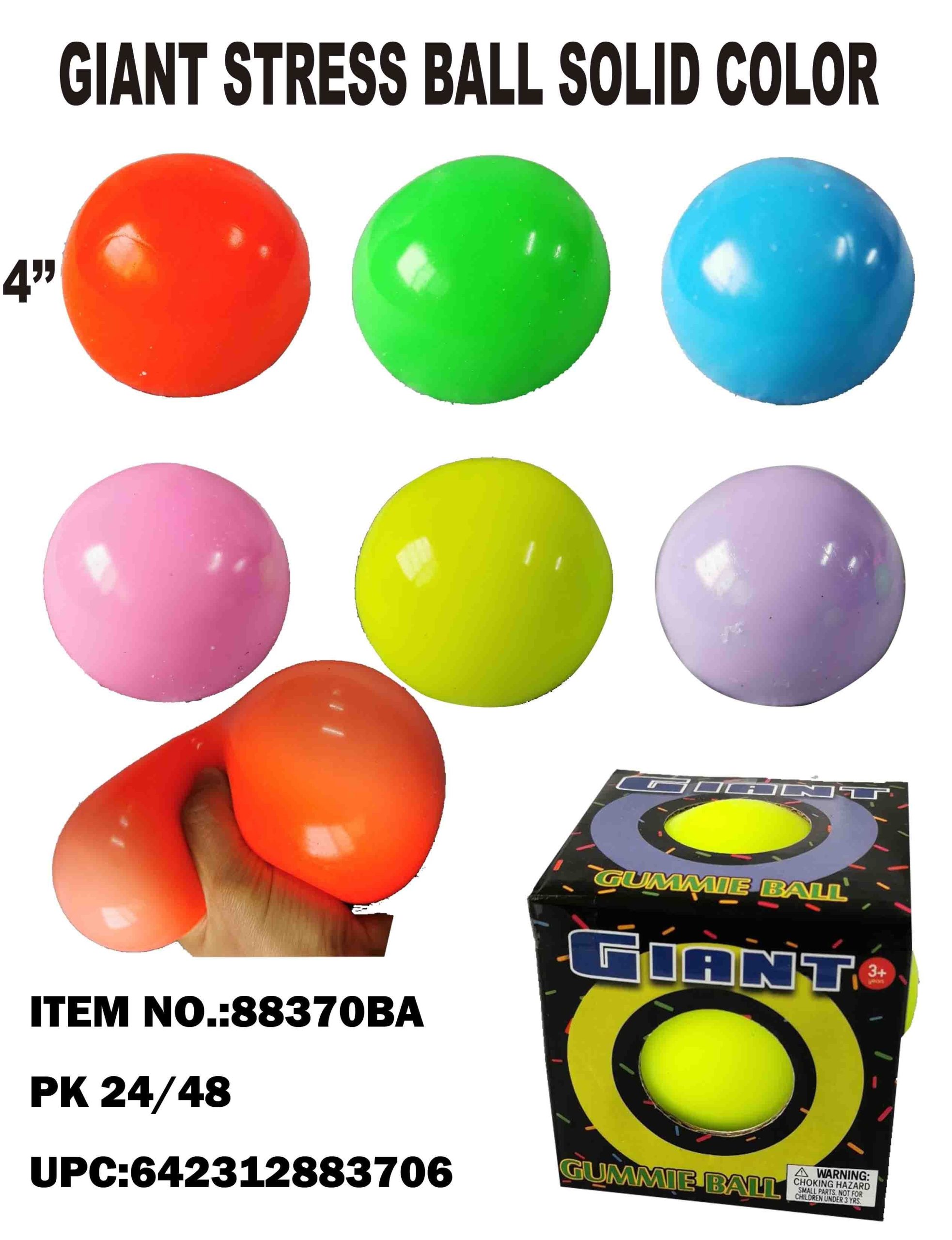 88370   4 GIANT SQUEEZE STRESS BALL  1/24/48PCS
