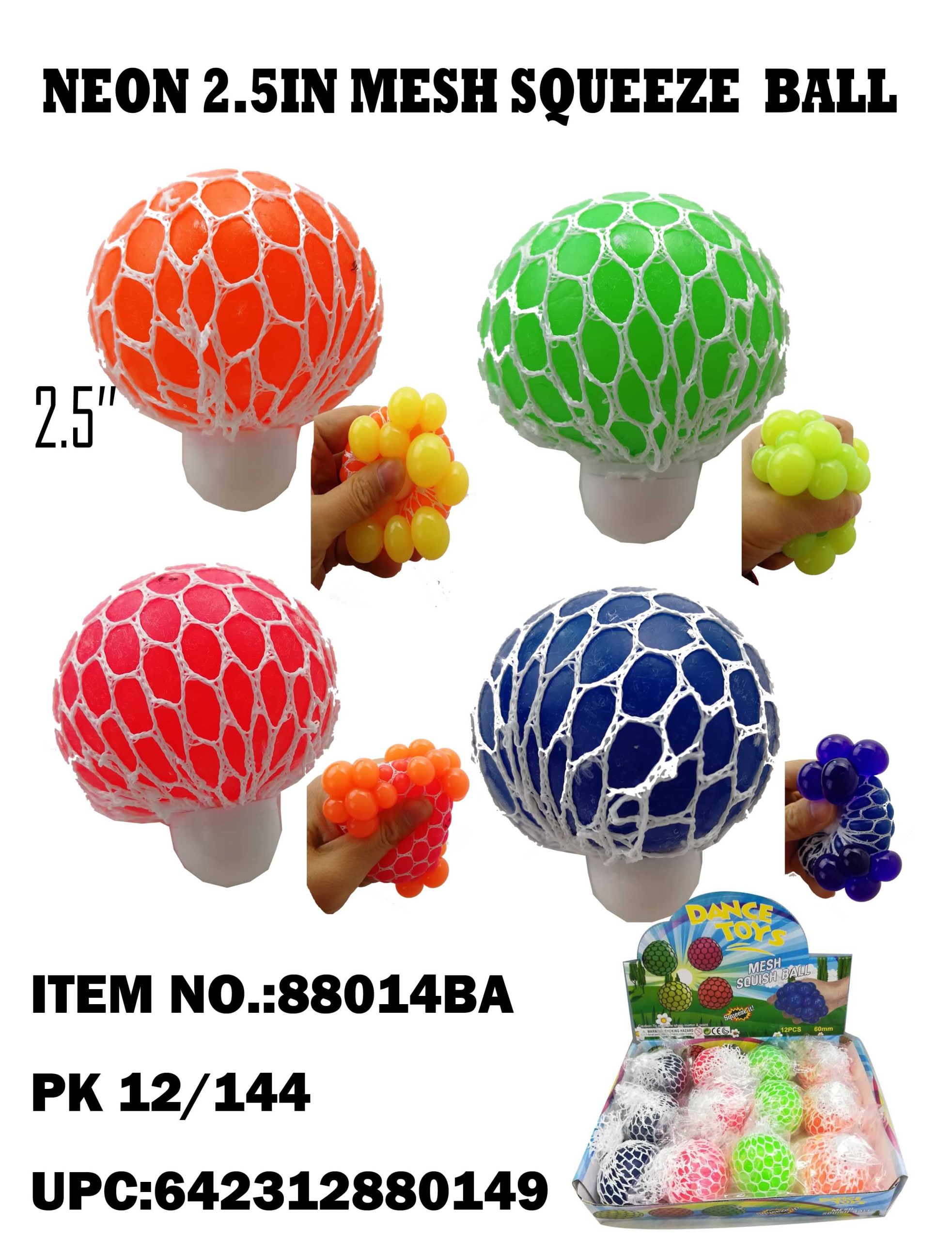 88014BA   Neon 2.5in Mesh Squeeze Ball 12/144 PCS