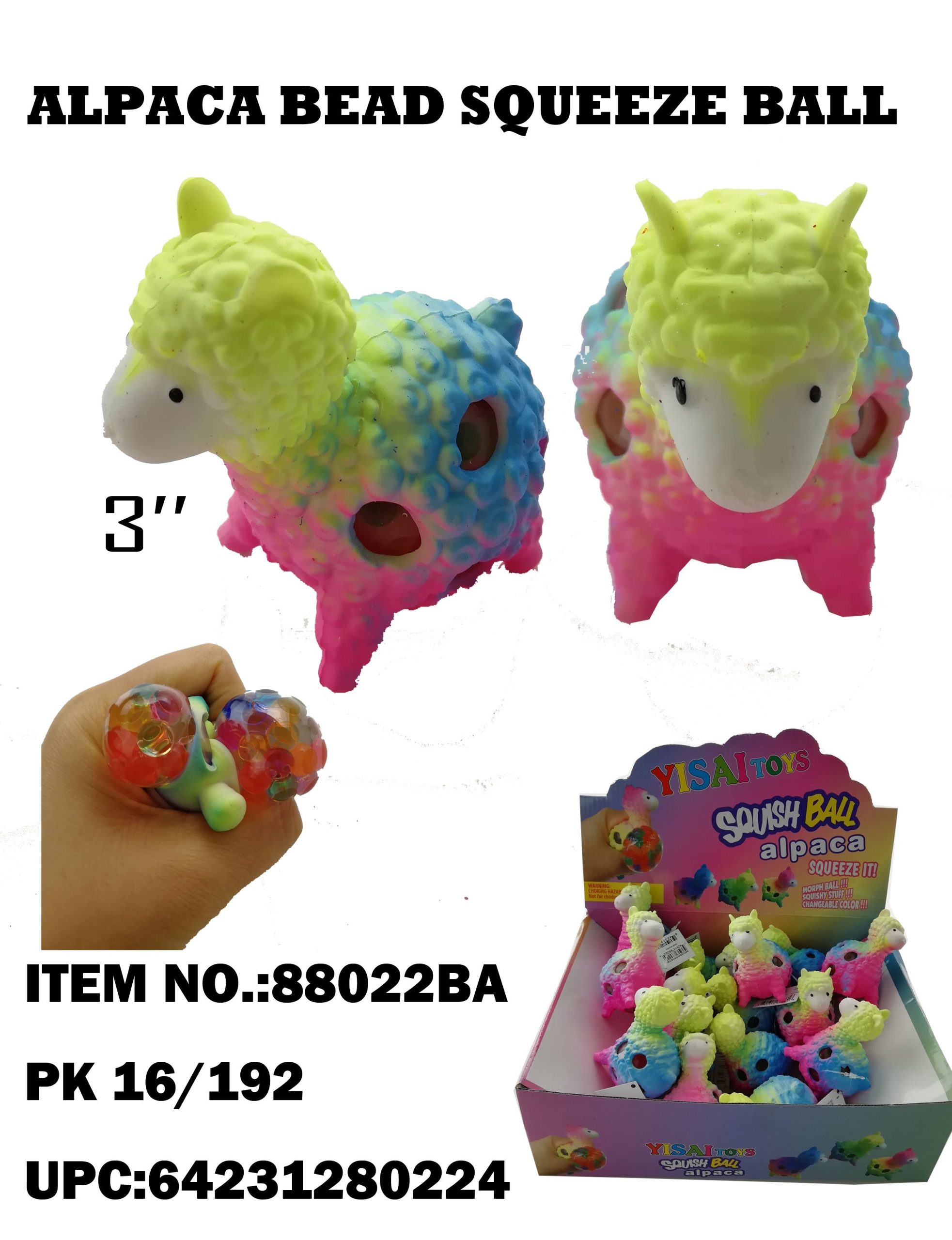 88022BA    Rainbow Squeeze 3.5in Alpaca with Beads 16/192PCS