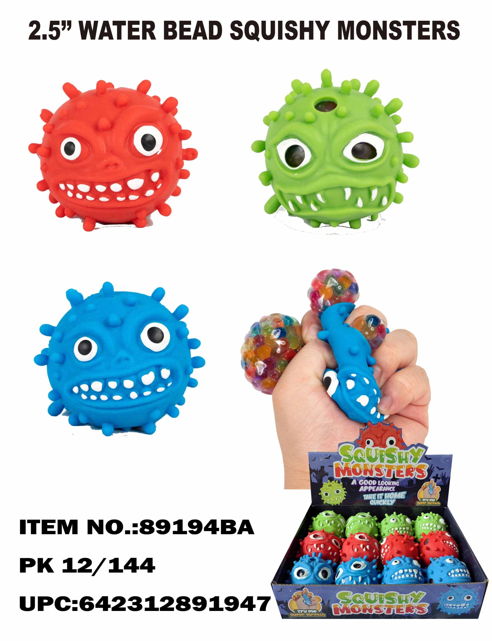 89194  Squeeze Monster with Colorful Beads Coming Out 12/144PCS Green. Red & Blue Mixed