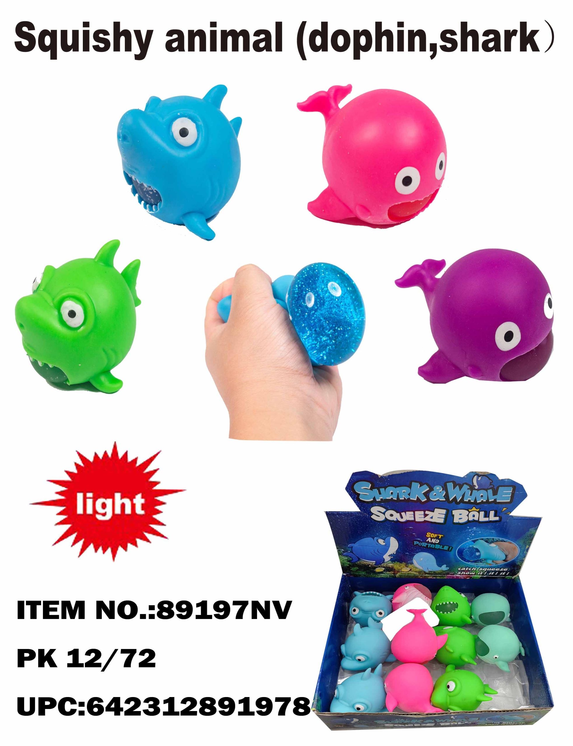 89197  Squeeze & Stretch Dolphin and Shark 12/72PC  Purple. Pink. Blue. Green Mixed